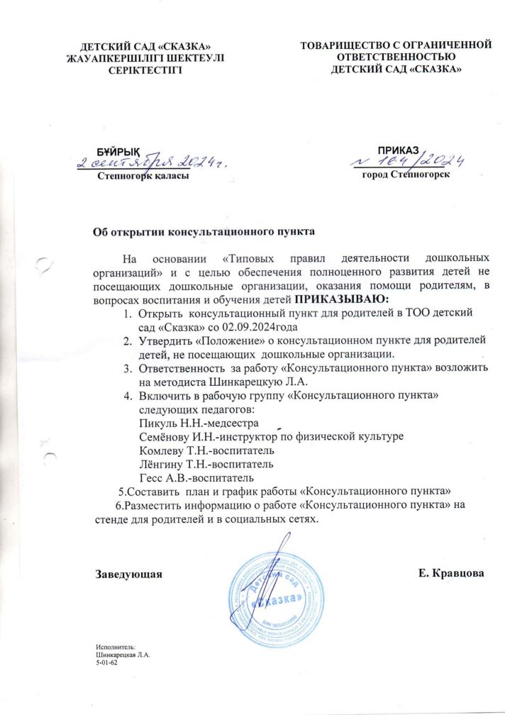 Товарищество с ограниченной ответственностью детский сад "Сказка"